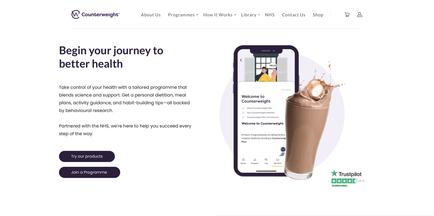Counterweight: a medically-proven weight loss programme aimed largely at people with type 2 diabetes - enabling them to reach remission quickly and stop taking their medication immediately upon commencing the programme.