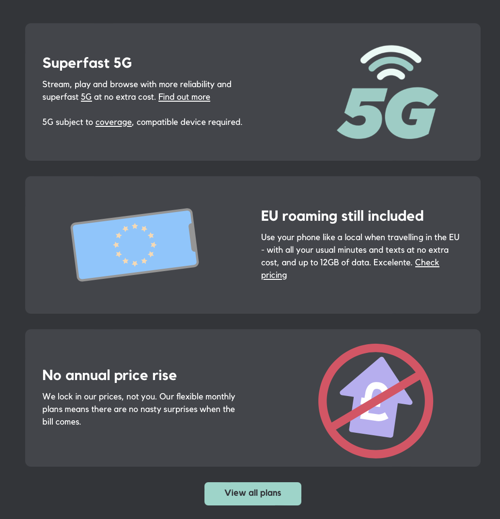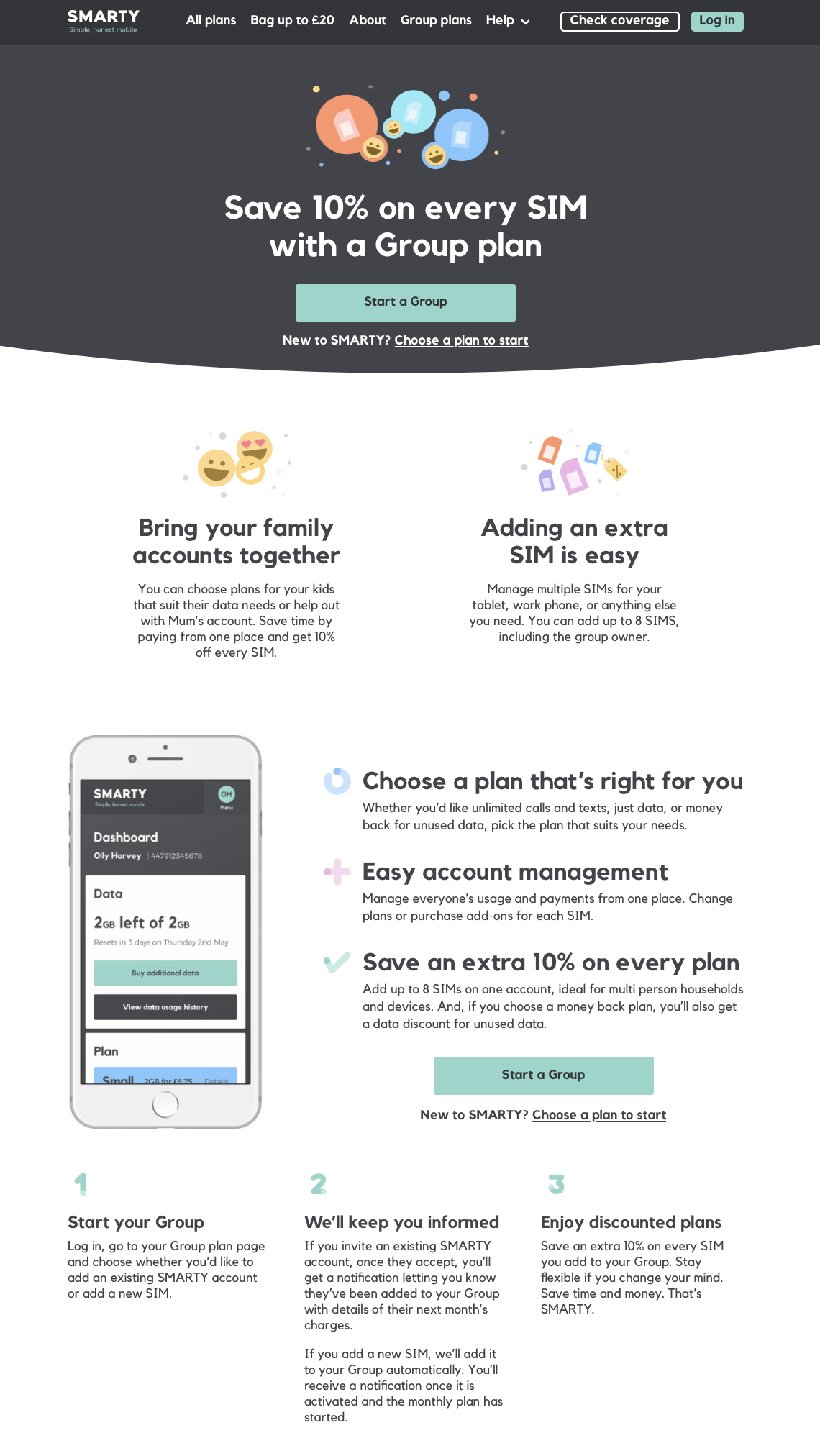 Following an extended contract with Three I was recommended to SMARTY (Three’s sister brand) . Over three months I worked closely with the UX and UI teams to help shape various initiatives, including an overhaul of the refer-a-friend scheme and a new SMARTY ‘Groups’ SIM offering. Much of this work was developed in Figma.